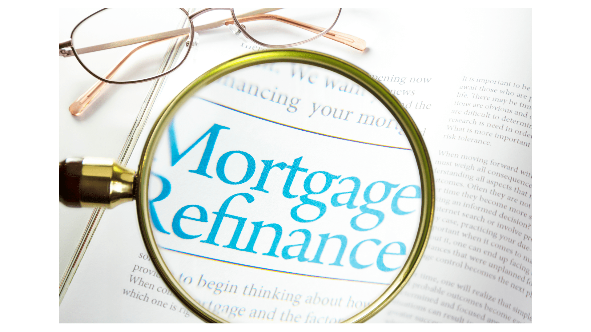 Visual of the words mortgage refinance under magnifying glass symbolizing decision-making about refinancing a home in Colorado